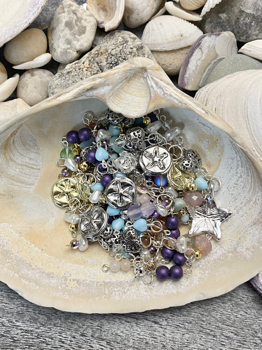 B’s Charm Bar Silver Plated Embossed Starfish Charm with Glass Pearl and Aventurine Dangle