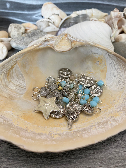 B’s Charm Bar Silver Plated Embossed Starfish Charm with Blue and Clear Dangle
