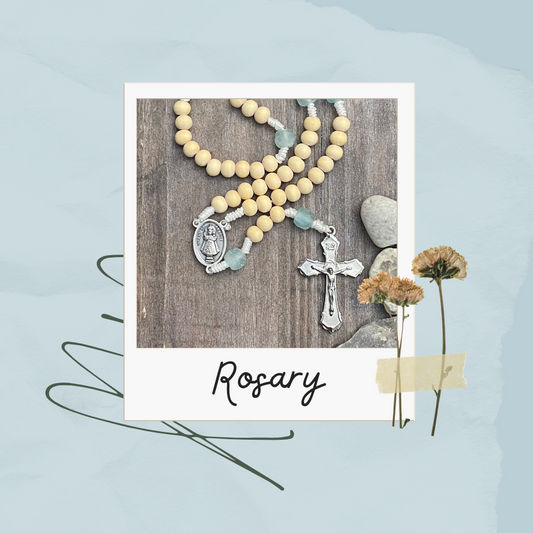 Rosario con cordón de madera y vidrio reciclado