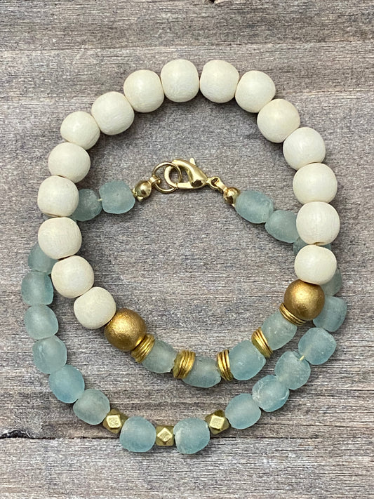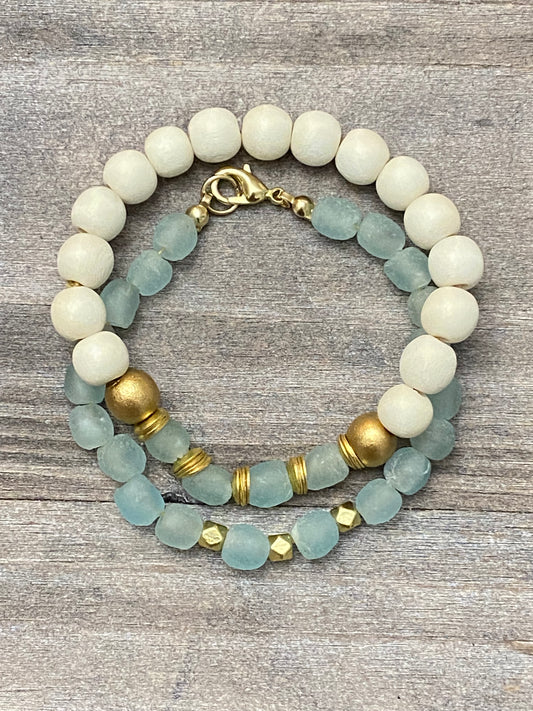 Pulsera de vidrio y madera reciclados