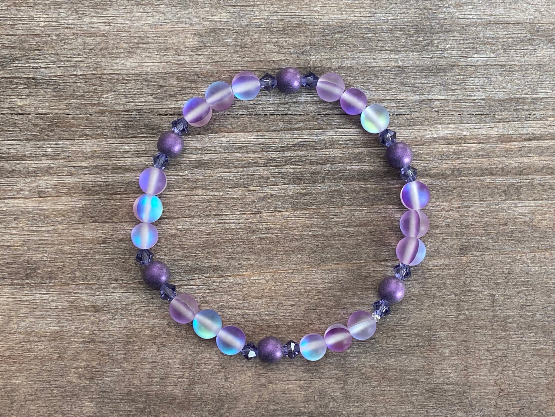 Perles rondes en verre de 6 mm, motif sirène, violet mat, aurore boréale